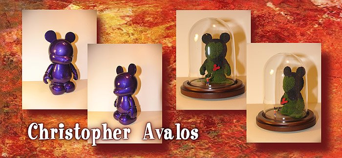 I asked if I could be apart of this event and represent Vinylmation. He was very excited and added me to the artist list. I quickly began work on my two customs for the silent auction. One being a Purple Candy 9″ Custom that would be signed by all the Disney panelist and a one of a kind Topiary entitled “From the Heart” where a little child holds a Red Mickey Balloon against a Purple/Green Mickey Topiary.