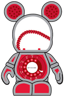 A nod to the era when it took 5 minutes to call someone. And whats that in the head? Phones once had cords? And look, another phone number on a Vinylmation! A clear head with the cord going through it.