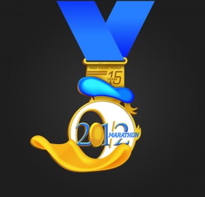 Saturday was the Half Marathon. 13.1 miles that started at Epcot, continued up towards the Contemporary Resort, then into the Magic Kingdom back lot, up Main Street USA, around Fantasyland and out through the back of Frontierland, then we made our way back to Epcot for a jog around Spaceship Earth, before ending up in (you guessed it) the parking lot. Donald Duck is the face of this race and the finishers medal glistened with his image.